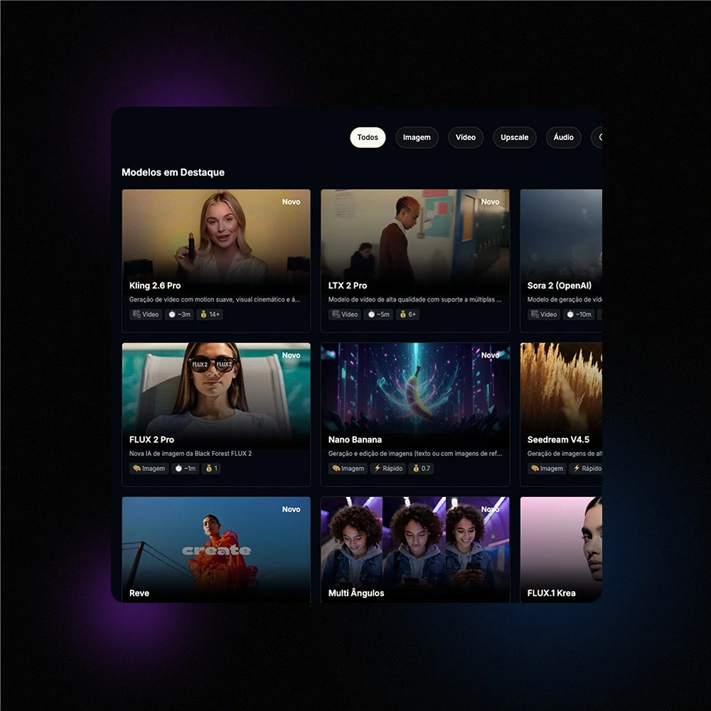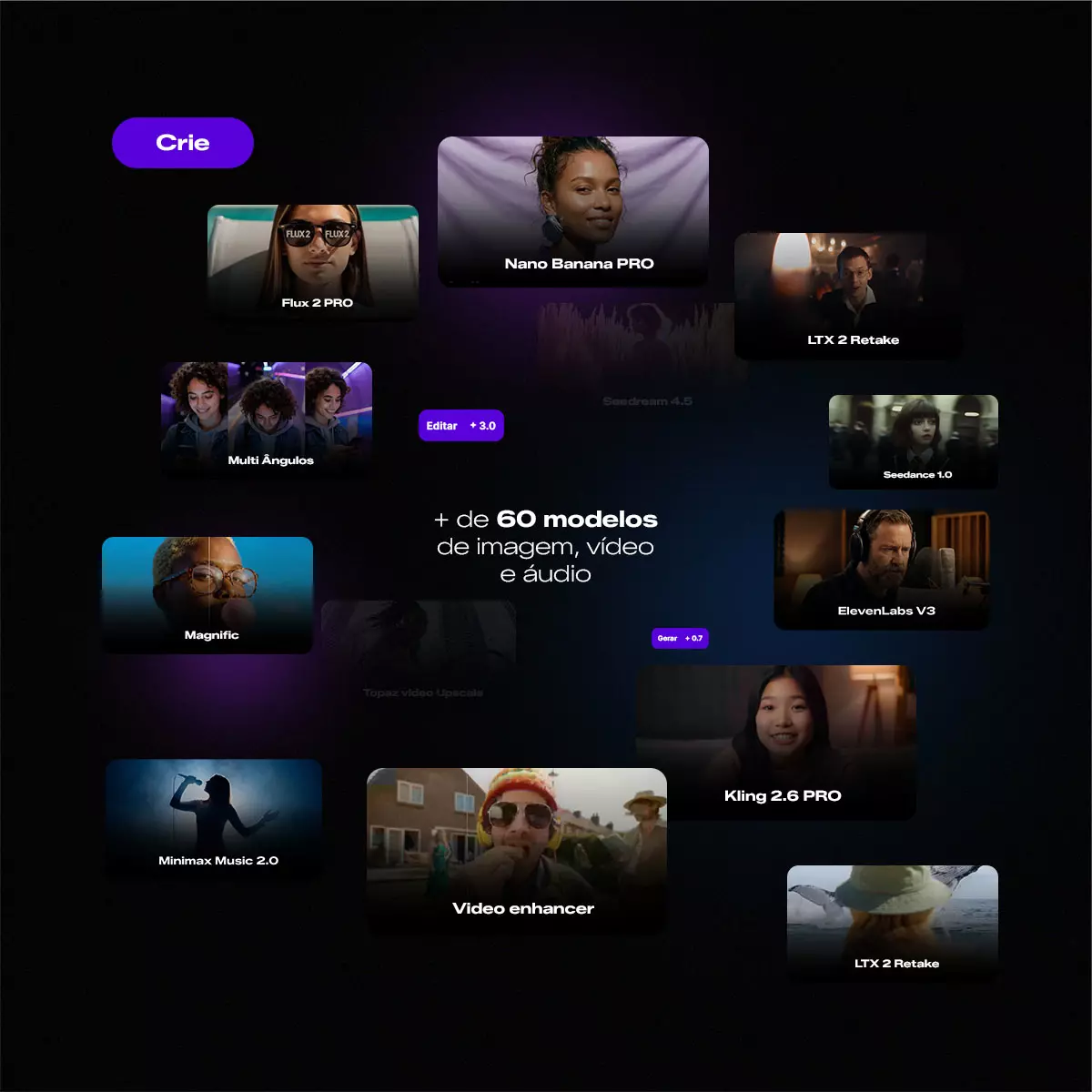 Acesso a +60 IAs de imagem, vídeo e áudio